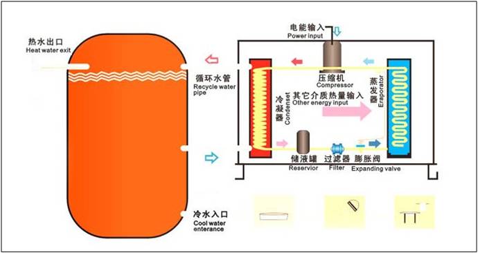 空氣能熱泵熱水器也稱“空氣源熱泵熱水器”“熱泵熱水器”“空氣能熱水器” 等。空氣能熱泵熱水器(空氣源熱泵熱水器)中的熱泵能把空氣中的低溫?zé)崮芪者M來,經(jīng)過壓縮機壓縮后轉(zhuǎn)化為高溫?zé)崮埽訜崴疁亍_@種熱水器(空氣源熱泵熱水器)具有高效節(jié)能的特點,其耗電量是同等容量電熱水器的1/4,是燃氣熱水器的1/3。空氣能熱泵熱水器(空氣源熱泵熱水器)的初期投資是煤氣、天然氣、電熱水器的三至五倍,但其日常運行成本較低。